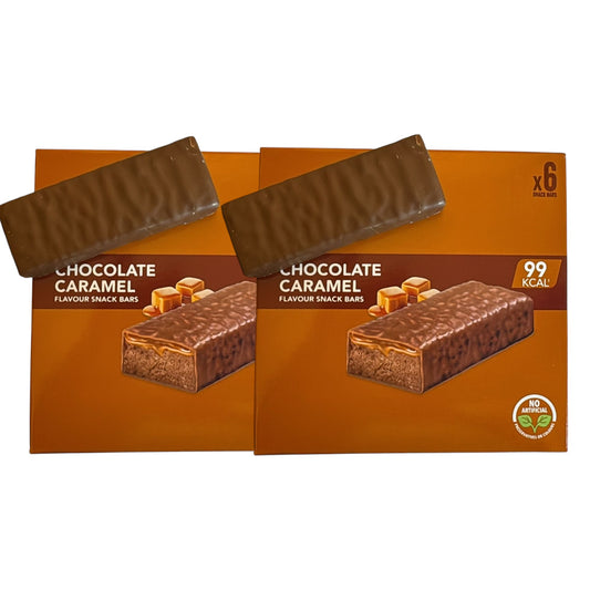 AETN Creations Chocolate Caramel Snack Bars 2x6 Pack – Low Calorie 99kcal Bars, Chocolate Coated with AETN Creations Meal Planner Guide