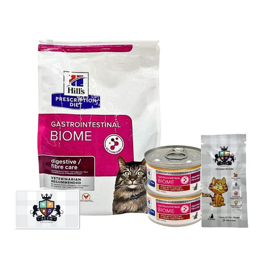 AETN Creations Gastrointestinal Biome Cat Bundle 1.5kg Dry Food + 2x82g Wet Stew Tins with AETN Chicken Treat Supports Digestive Wellness