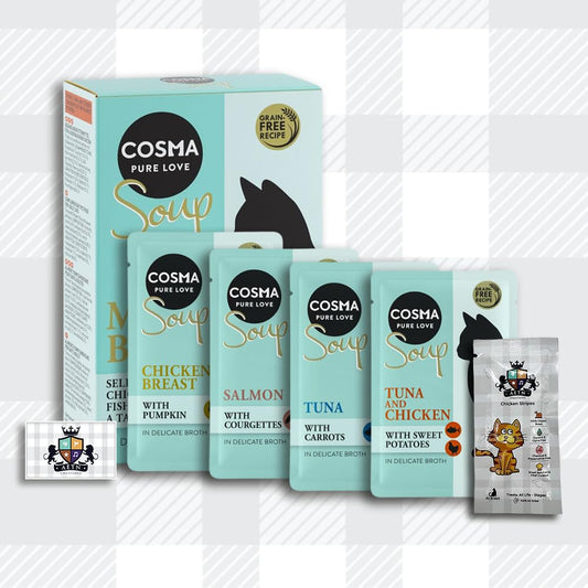 AETN Creations Cosma Soup Mix Box Wet Cat Food in Chicken and Fish Flavour 16x40g - Grain-free, Supplementary Meal for Adult Cats with AETN Cat Treat