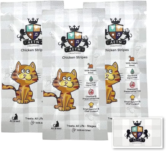 AETN Creations Chicken Stripes Cat Treats Travel Size Pack of 3x3g Complete and Balance Snack Cat Food Made and Natural Ingredients for all Stages and Breeds