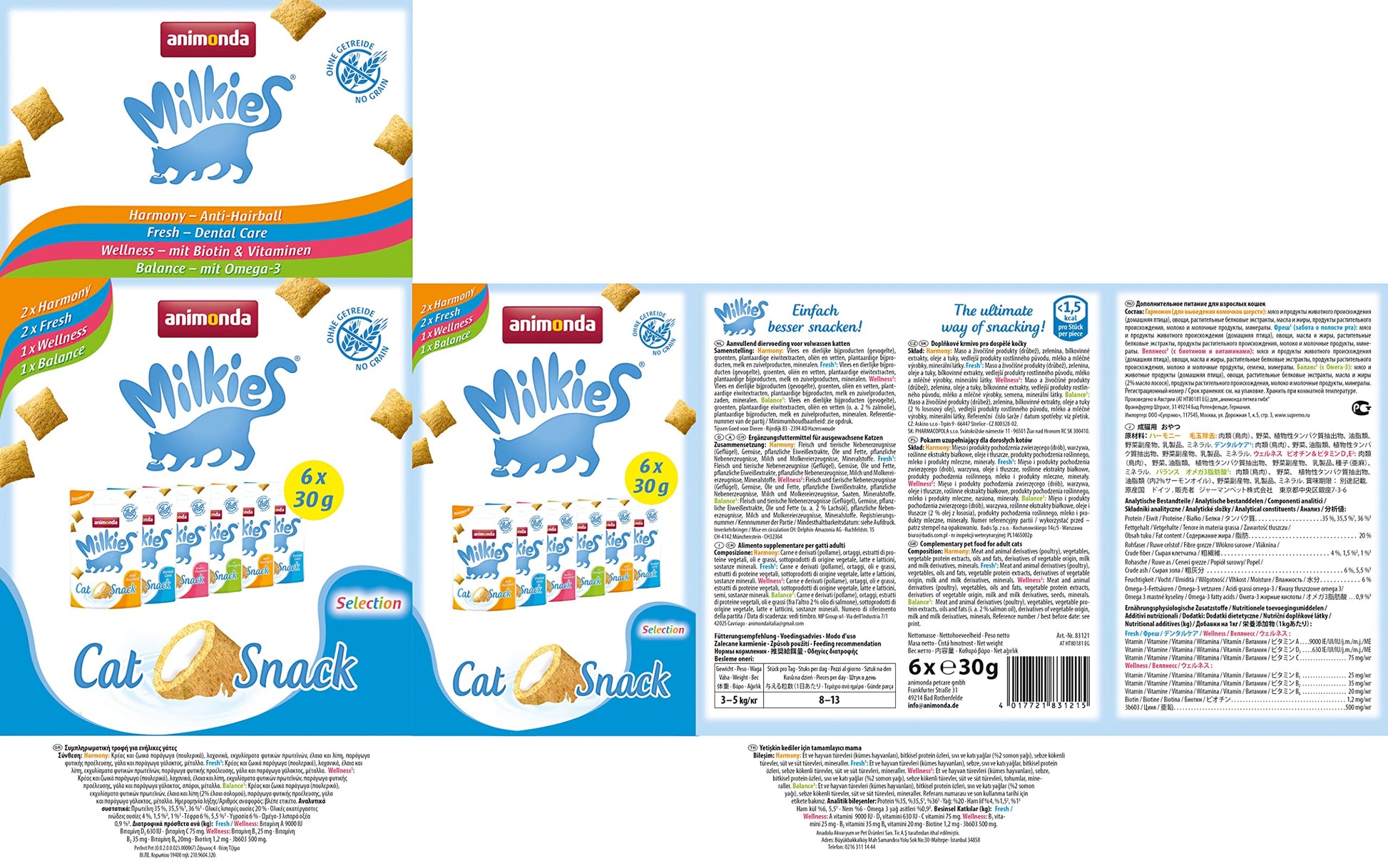 animonda Milkies, crunchy grain-free snacks for cats, cat treat, selection, 6 x 30g