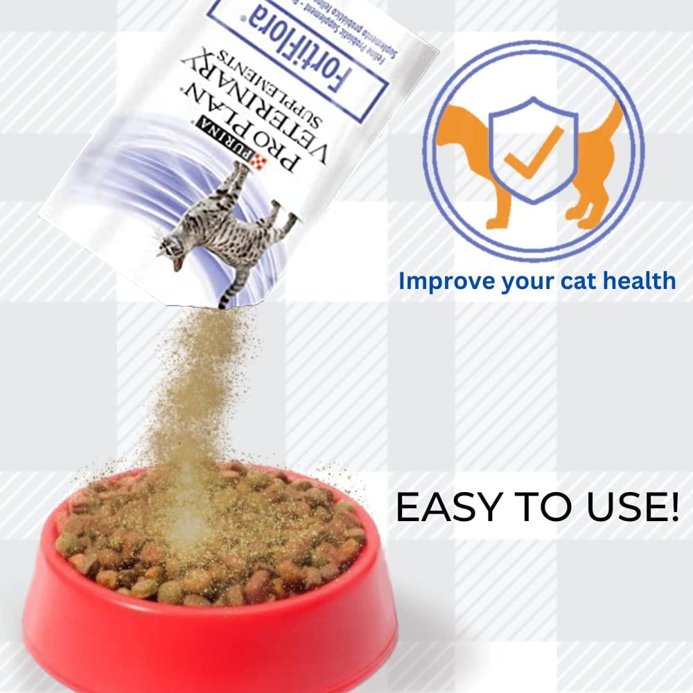 - Bundle includes two packs of Fortiflora powder supplement veterinary recommended supplements for the treatment and managing your pet kitten and adult cats with diarrhoea. Plus an AETN Creations Fridge Magnet.