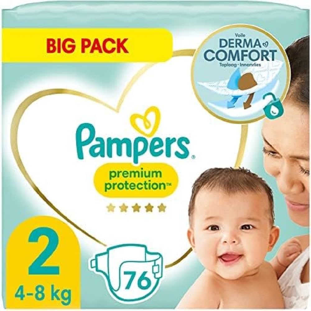 Pampers Baby Nappies Size 2 (4-8 kg) Premium Protection, Newborn Mini, Big Pack, Best Comfort and Protection for Sensitive Skin, 76 Pieces
