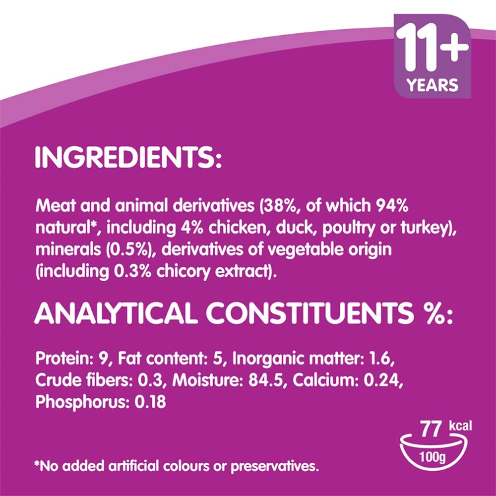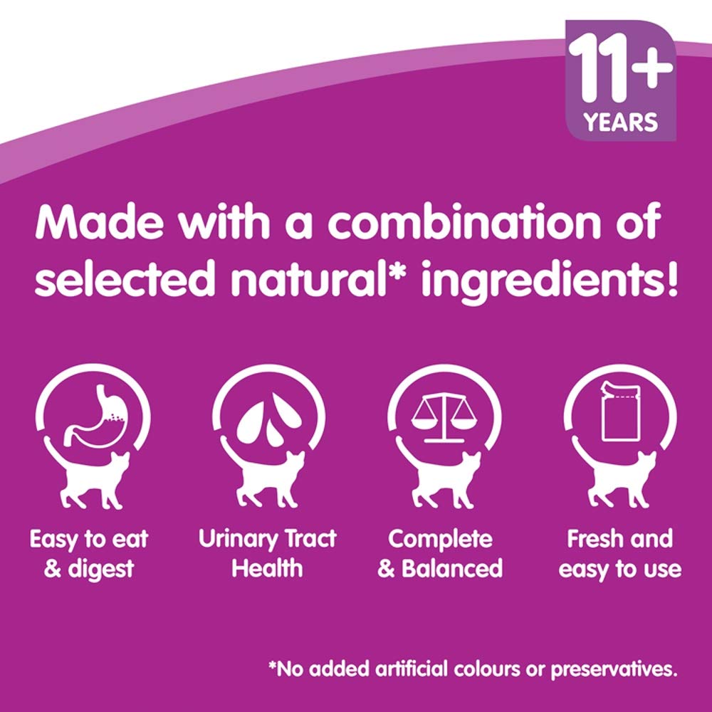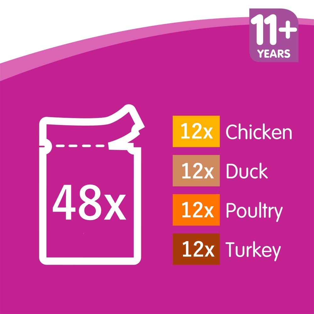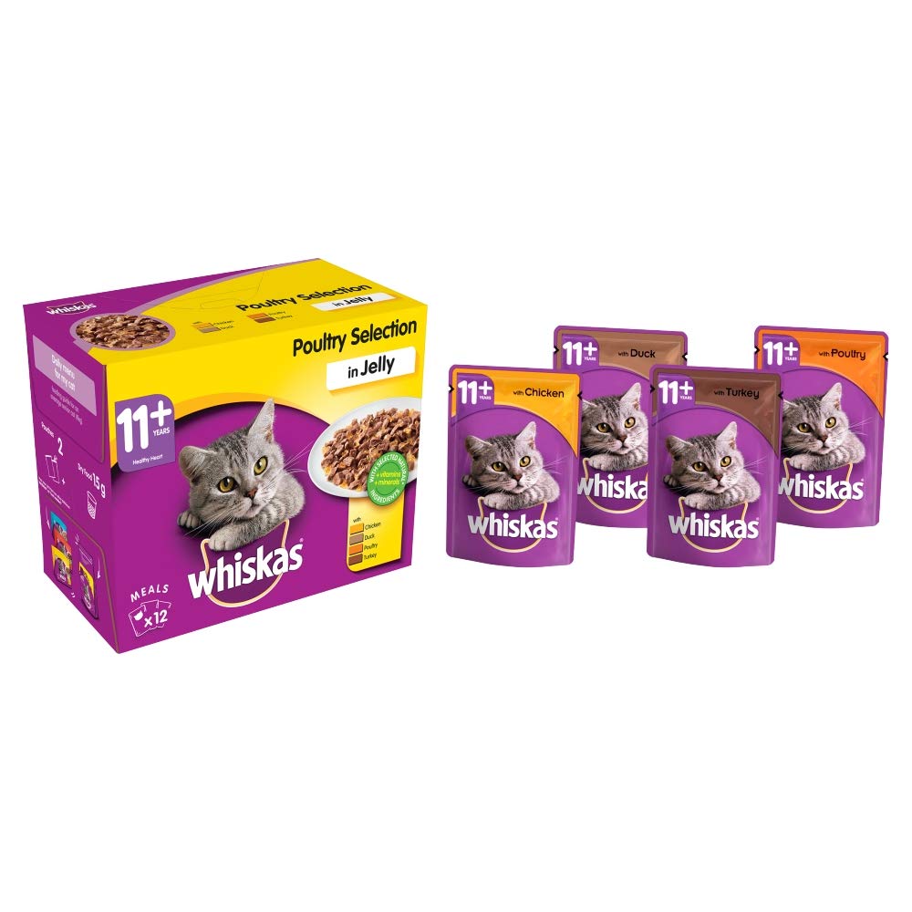 Whiskas 11+ Cat Pouches Poultry Selection in Jelly 12 x 100g (Pack of 4, Total 48 Pouches)
